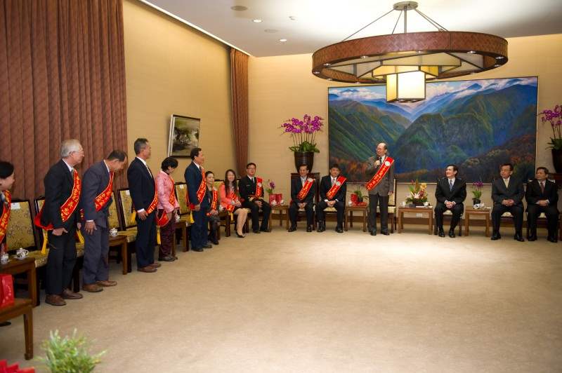 馬英九總統今天上午在總統府接見「中華民國第8屆金舵獎」得獎人一行,對於訪賓從事青少年觀護工作成效卓著,讓社會變得祥和溫暖,表達感謝及肯定之意。