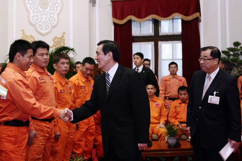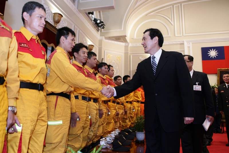 馬英九總統今天上午在總統府接見海地地震我國國際救援團隊及國防部慈航團隊,對此次我國的救災表現,贏得國際友人的尊敬與輿論肯定,讚揚大家是真英雄、台灣之光。
