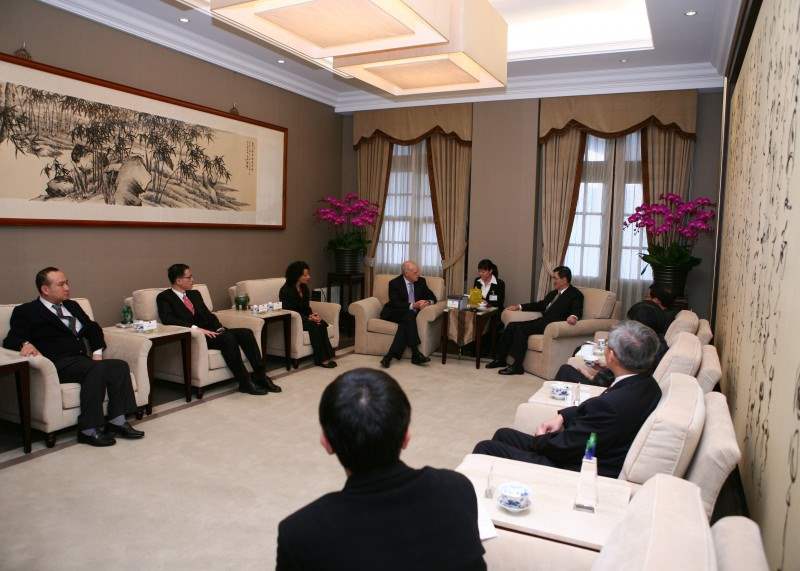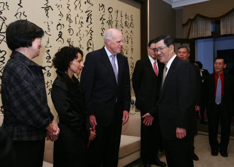 H校長伉儷、史丹福大學在台校友會蕭總經理子凱、李董事長謀偉、葛董事長廣漢、余董事長範英及古教務長思明等人,下午由教育部次長陳益興陪同,前來總統府拜會副總統,賓客相談甚歡,歷時約50分鐘結束。