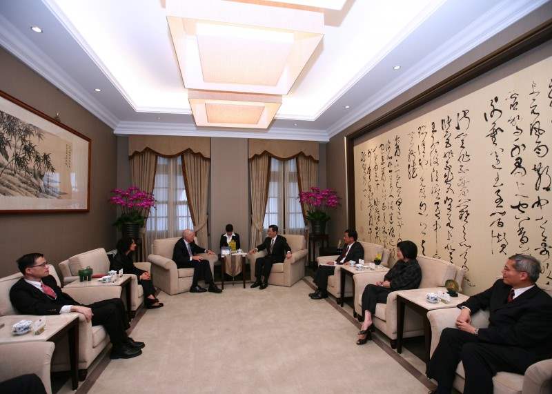 蕭萬長副總統今天下午在總統府接見美國史丹福大學校長Dr. John Hennessy伉儷,代表政府及人民表達誠摯歡迎之意。