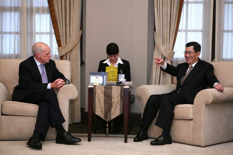 H校長伉儷則感謝副總統撥冗接見,並表示,此次訪台除與史丹福大學在台校友會晤,就相關合作事項進行研討外,並與我國教育部針對學術交流交換意見,希望能將史丹福大學的人才培訓、教育經驗引進台灣,讓台灣的校園更具有國際競爭力。