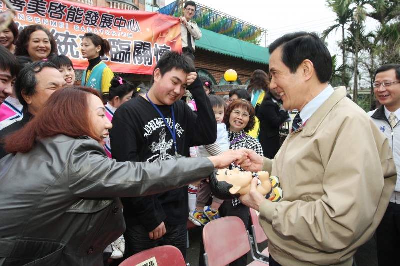 有關喜憨兒老年照護問題,總統表示,這是政府無可逃避的責任,內政部已審慎研究、規劃評估中,因為照顧老人就是照顧自己的未來。當一個國家提供很完善的社會福利時,就會有很多人願意提出申請,這是正常的現象,我們應以正面、健康、積極、進取的態度來看待,而這也是大家展現愛心的最佳時機。