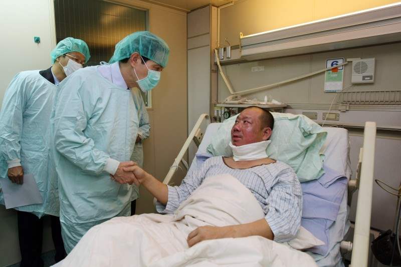 總統上午特別前往中山醫院探視並慰問受傷者,同時在該醫院燒燙傷加護病房外,頒獎給義消楷模黃景彬先生,由其父黃坤筆先生代為領獎。總統對於義消的英勇行為,表示敬佩。