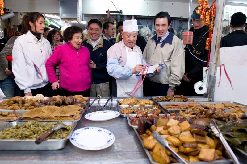在市場內,總統除買青菜、水果外,還有滷味、包子、水餃等食材,同時,發春聯及紅包袋給民眾,受到現場民眾熱烈歡迎。總統表示,能陪媽媽買菜就是最高興的事,他最愛吃的媽媽拿手菜牛肉炒冬筍及紅燒羊肉,是永遠不會忘記的好菜,但媽媽年紀大,能陪媽媽一起用餐已經很開心,不一定要媽媽下廚做年夜飯。
