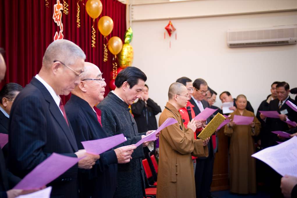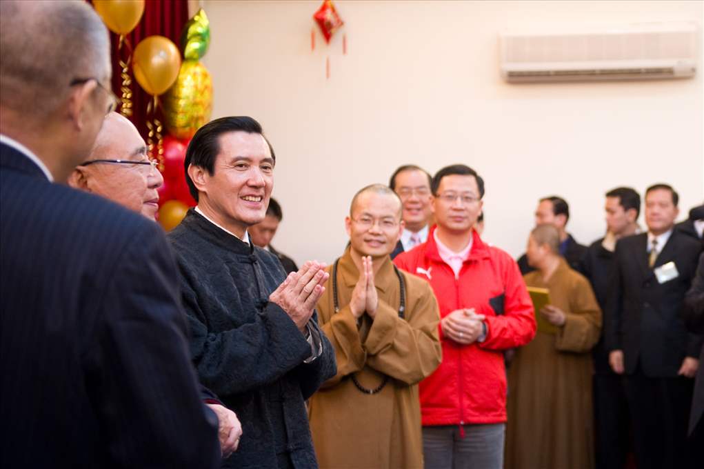 馬英九總統下午出席「佛光山禪淨中心禮佛及新春團拜」,總統由行政院長吳敦義、吳榮譽主席伯雄、桃園縣長吳志揚等人陪同出席。