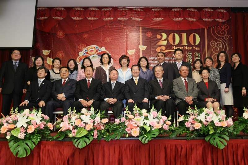 下午的團拜活動,行政院院長吳敦義、總統府資政詹啟賢及衛生署署長楊志良都在場陪同。