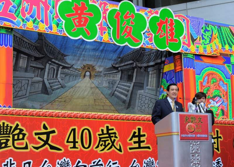 馬英九總統今天下午前往台灣電視公司出席史豔文40歲生日派對活動,除現場欣賞史豔文布袋戲表演,並致詞肯定創辦人黃家世代傳承的精神,盼各界共同珍視得來不易的台灣文化資產。