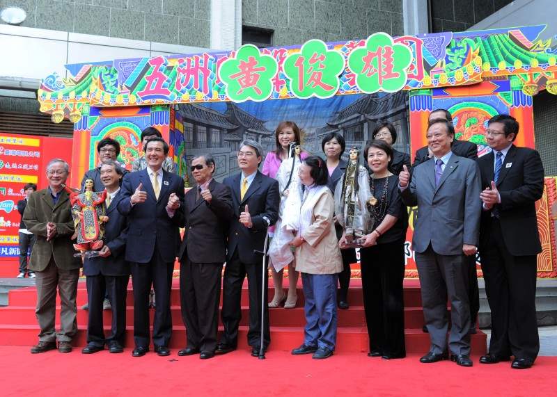 總統回憶,他在十幾年前參選台北市長的時候,黃海岱老先生帶了一個史豔文的戲偶獨自搭車來台北見他,現場唸出一段五言絕句:「台灣路不平、為民向前行;台灣馬英九、為國為民生」。總統說,他久仰黃老先生大名,但素昧平生,黃老先生卻願意送戲偶來鼓勵他,令他深受感動。
