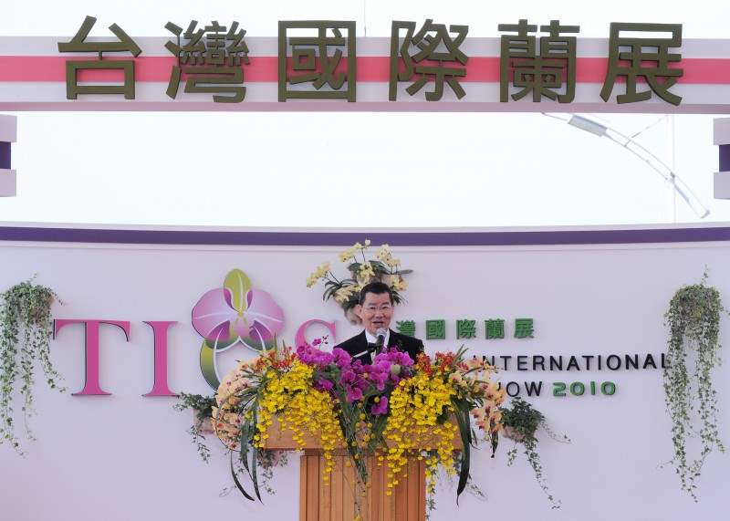 副總統致詞時表示,在展場看到許多美麗的蘭花,深感賞心悅目、讓人讚歎不已,他要代表馬總統向參與此次展覽的台南縣政府、蘭花業界、外貿協會及行政院農業委員會等單位的付出與貢獻,表達敬意與謝意。