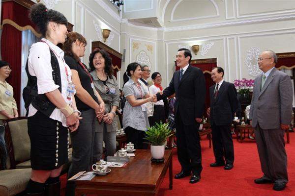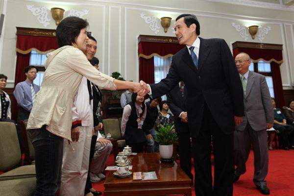 馬英九總統今天上午在總統府接見法務部馨生人轉任財團法人犯罪被害人保護協會志工,對他們將自身傷痛化為大愛,鼓勵被害人家屬走出傷痛,表達最高的肯定與敬佩之意。