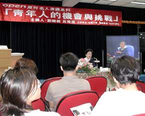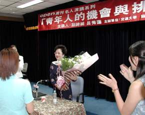 副總統首先以她的人生際遇-從在烽火相連的時代出生到成為國家副元首-向學子們表示,她降生於台灣是命定,無法選擇,但五十八年來本身生活的點點滴滴,卻與台灣息息相關,她相信大家與她一樣,對台灣都有特定的權利義務及因緣,因此她勉勵大學生們應多思考自己的定位及未來追求的目標。