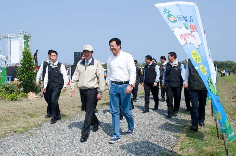 馬英九總統今天上午前往台北縣八里鄉十三行文化公園出席由行政院農業委員會主辦的「減碳森(生)活.綠動99-99年中樞紀念植樹活動」,除應邀致詞,並親自種植福木,帶領全國民眾為地球環保盡一份心力。