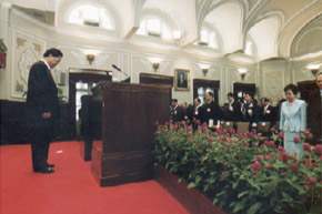 在唱國歌及向國旗暨國父遺像行三鞠躬禮後,首先向此次華航空難罹難者默哀,隨後舉行宣誓典禮,宣誓人行政院政務委員葉俊榮、經濟部政務次長陳瑞隆及行政院大陸委員會副主任委員劉德勳,在總統監誓下,面對國旗、國父遺像,高舉右手,宣讀誓詞。儀式莊嚴隆重。