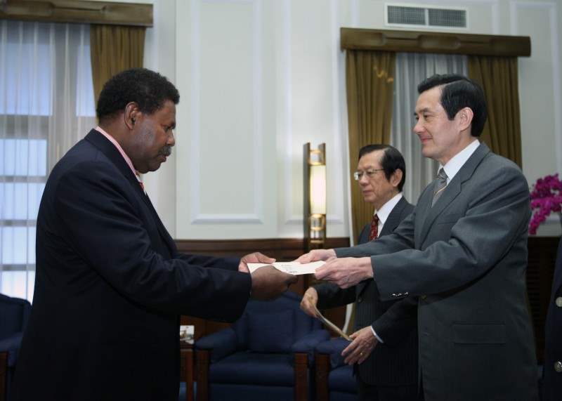 索羅門群島新任駐華特命全權大使恩雷(Victor Samuel Ngele)今天向馬英九總統呈遞到任國書。