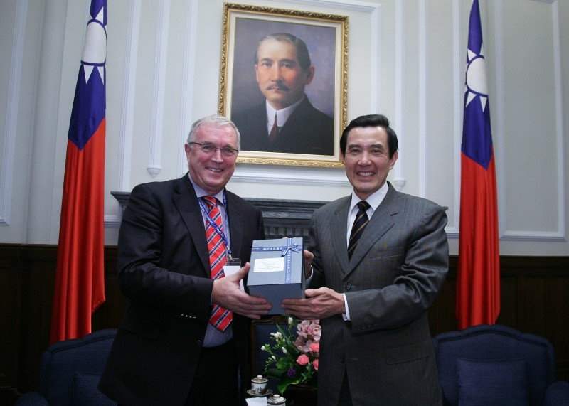 馬英九總統今天下午在總統府接見國際自由車總會會長麥奎爾(Patrick McQuaid)一行,向訪賓說明我國希望加強自由車運動國際合作的意願。