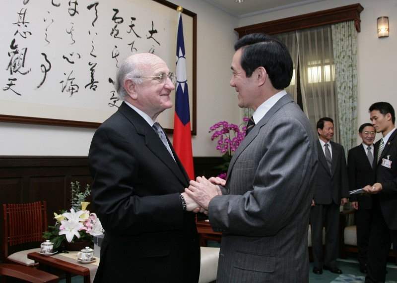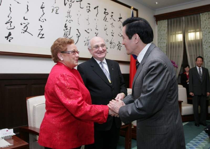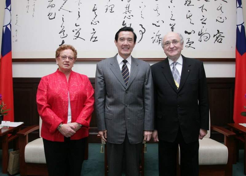 馬英九總統今天下午在總統府接見愛爾蘭前外交部長柯林斯(James Gerard Collins)伉儷,對訪賓來台表達誠摯歡迎之意。
