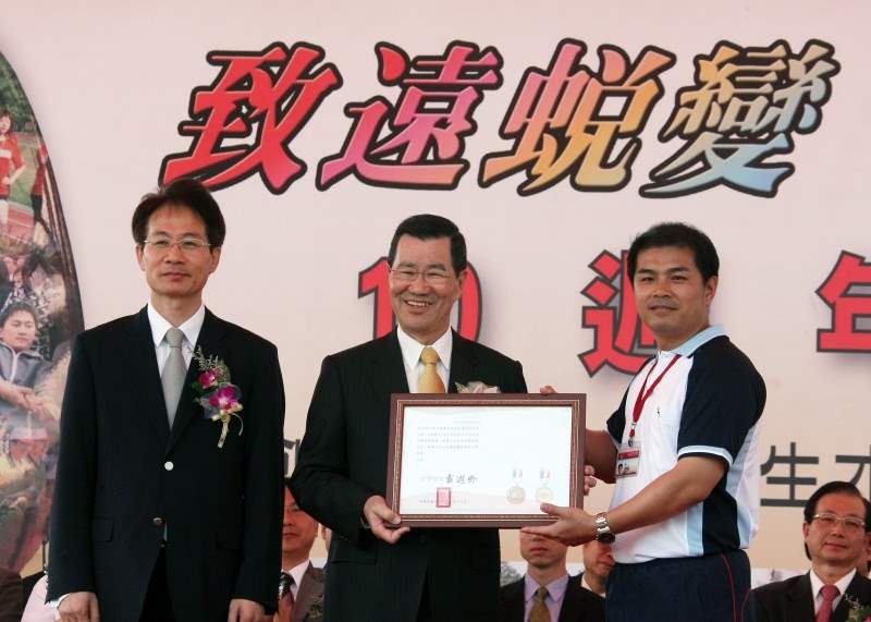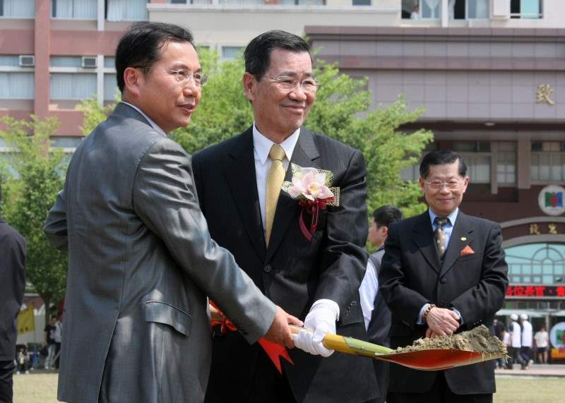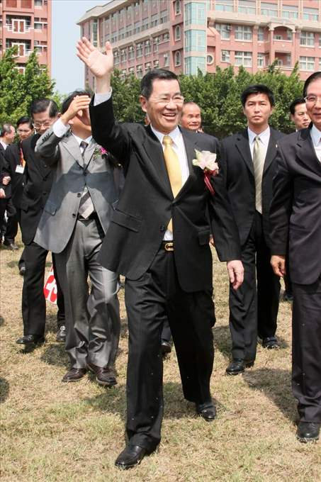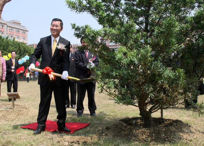 副總統致詞後,與教育部長吳清基等人,一同在校園內植樹紀念。