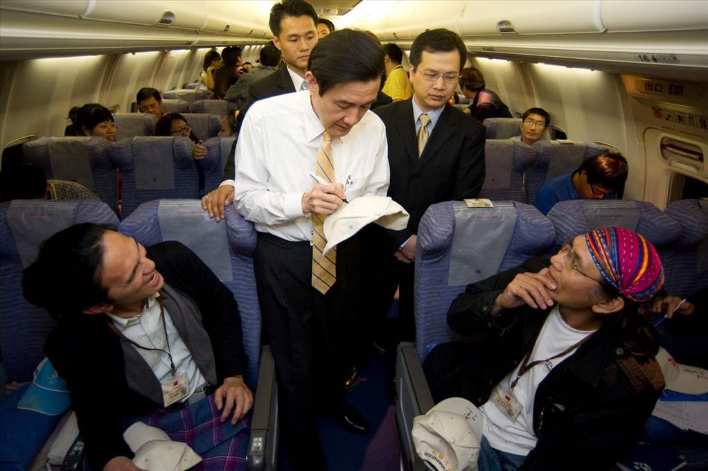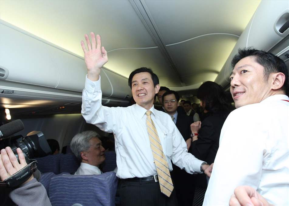 馬英九總統率團訪問我南太平洋友邦,今(21)日晚間啟程後,為表達對所有團員及隨行媒體記者的感謝,總統透過專機上廣播系統發表談話。