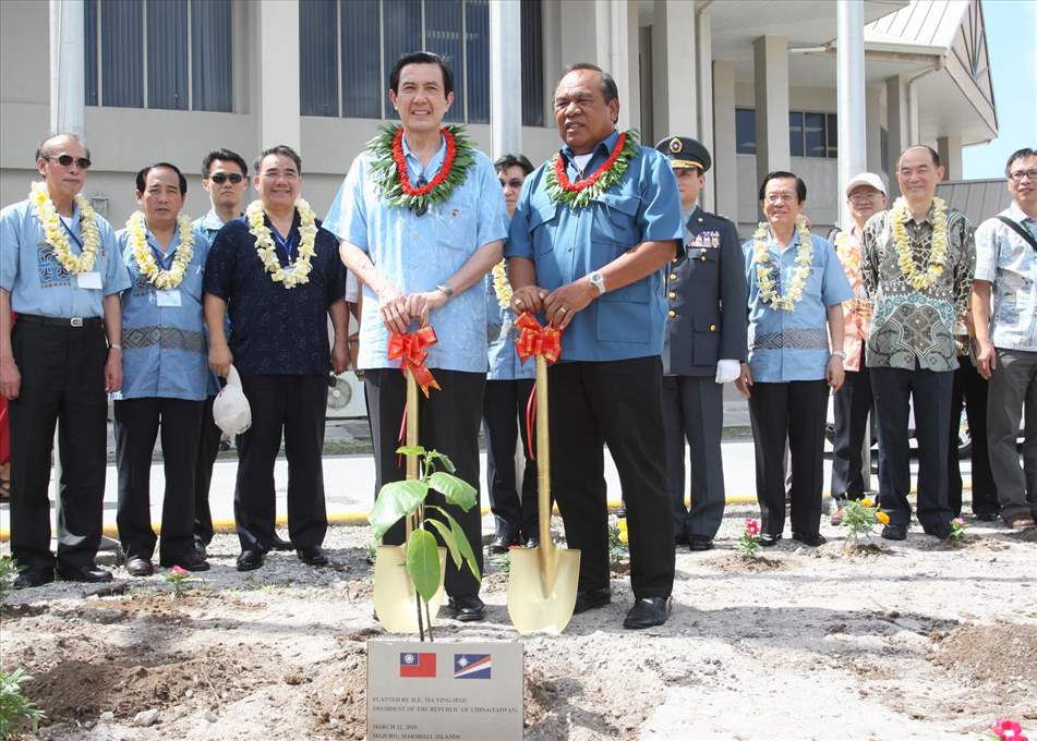 隨後,總統前往馬國內閣會議室與查凱爾總統晤談,就彼此關切事項進行意見交流。總統相當關心該國遭受氣候變遷的影響,並表示中華民國與馬紹爾群島共和國一定會在既有邦誼基礎上,更加強雙邊互動。查凱爾總統則重申兩國邦誼堅固,馬國將繼續堅定支持中華民國,共同為世界進步繁榮奉獻心力。晤談畢,總統致贈我國產HTC手機予查凱爾總統,做為兩人會晤的留念,隨即,兩國元首步行至國際會議中心外廣場,主持植樹儀式,樹種名為葛塔德木(Guettarda Speciosa),象徵彼此邦誼長青。