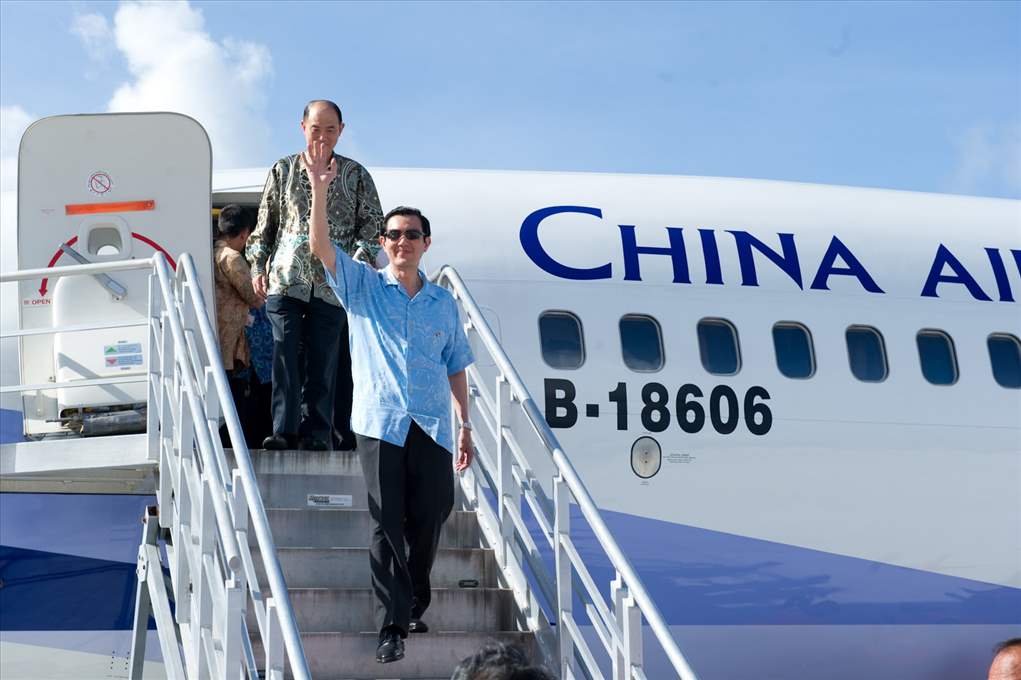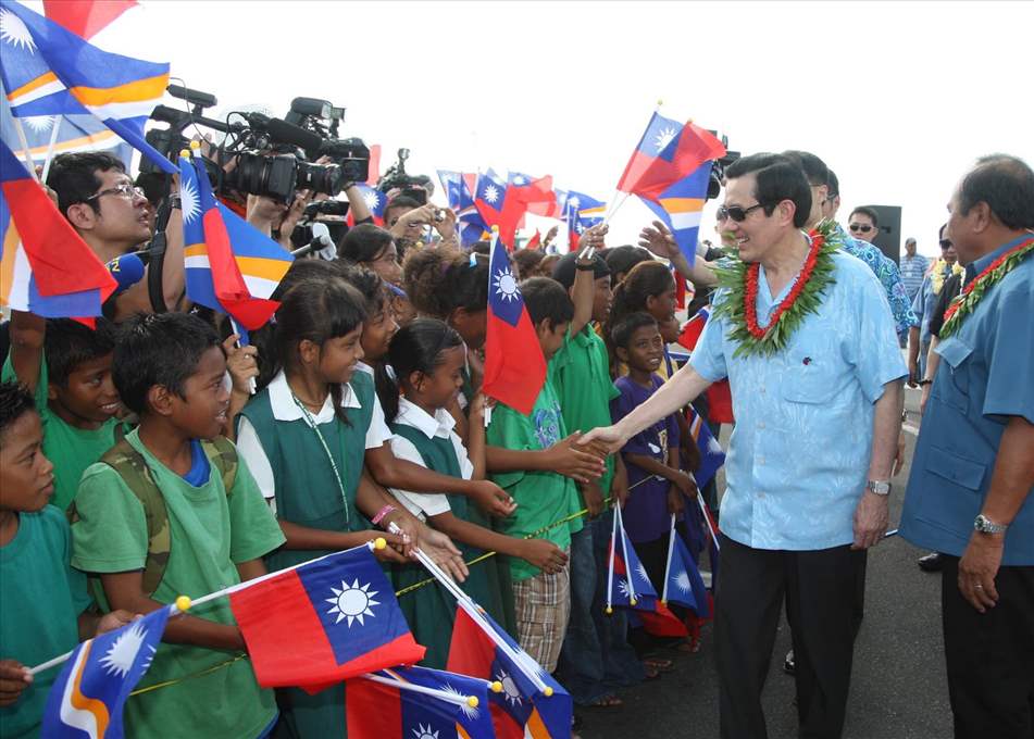 馬英九總統「太誼之旅」今(22)日上午9時(台北時間上午5時)抵達馬紹爾群島共和國的馬久羅國際機場,並接受軍禮歡迎。馬國禮賓司長Neijong Edwards及我駐馬國大使令狐榮達登機恭迎,查凱爾總統及馬國外長席克(John Silk)於機梯旁歡迎。