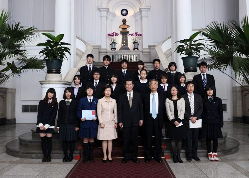 「第7屆台日文化交流青少年獎學金」得獎日本學生,下午由新聞局副局長王麗珠、產經新聞山本勳支局長陪同,前來總統府拜會副總統。