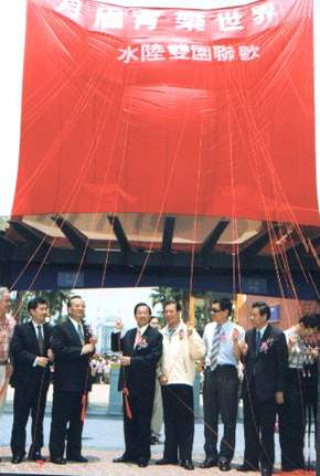 最後,阿扁要代表政府對楊董事長投資月眉育樂世界,為這塊土地認真打拼的精神表示肯定和感謝。也祝福楊董事長和他的事業能夠順利成功,業務蒸蒸日上,為國家和大眾創造更多的服務和福利。同時,我也要藉這個機會,希望我們鄉親能夠重視休閒和旅遊,休假日多多到國內的遊樂區和風景區走一走,不但提昇生活的品質,也共同來帶動台灣本土休閒產業的繁榮。