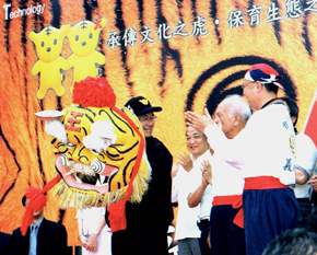 今日非常高興,來到台中著名的購物中心Tiger city老虎城,參加「薪『虎』相傳-傳承文化、保育生態」的活動。尤其主辦單位能邀請到全台灣唯一「弄虎」不「弄獅」的台中縣外埔鄉「義虎團」,來表演「弄虎」的獨門絕技,更是別具意義。