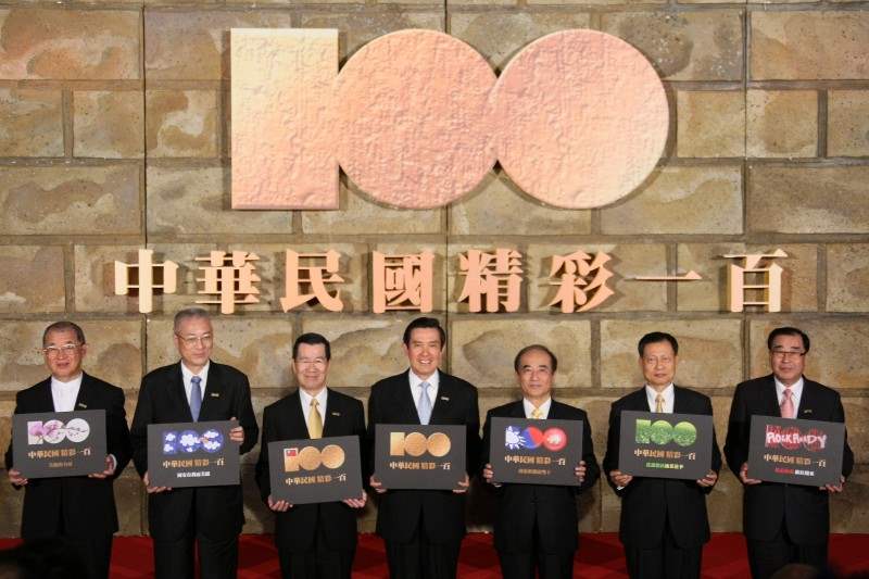 「中華民國建國一百年慶祝活動籌備委員會」今(29)日青年節在總統府舉行「中華民國建國一百年識別標誌啟用記者會」,馬英九總統以貴賓身分偕同身兼籌備委員會主任委員的蕭萬長副總統,一起見證識別標誌的啟用,宣布建國一百年系列活動正式啟動,並應邀致詞;隨後與行政院長吳敦義、立法院長王金平、司法院長賴英照、監察院長王建煊、總統府秘書長廖了以(身兼建國一百年基金會董事長)等貴賓手持識別標誌牌合影。