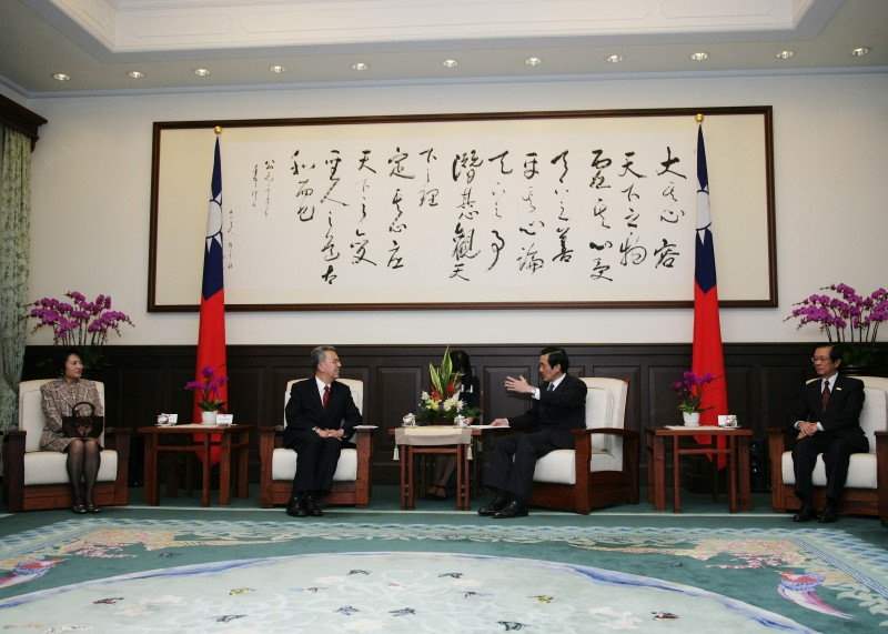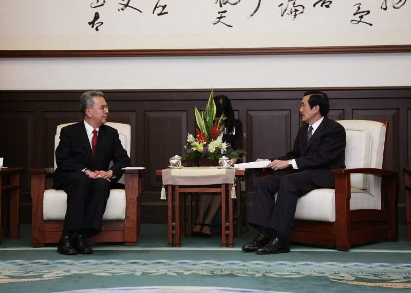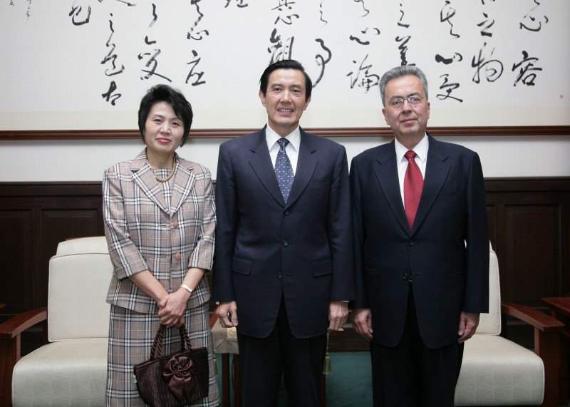 薩爾瓦多駐華大使尚塔那伉儷下午由外交部長楊進添陪同,前來總統府晉見總統,國家安全會議副秘書長李海東也在座。