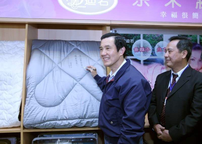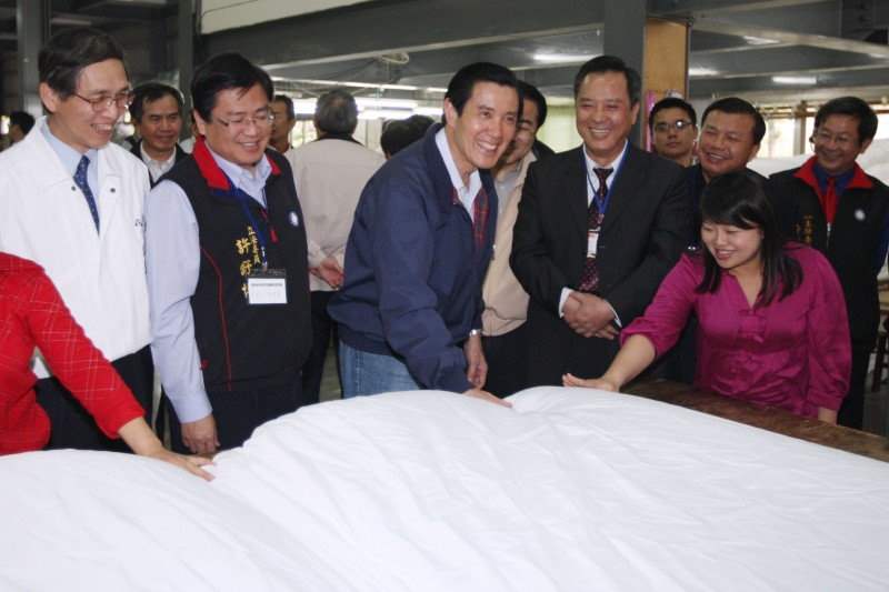 座談會結束後,總統趨車前往豐本實業有限公司及興隆毛巾工廠訪視,實地參觀製作流程。