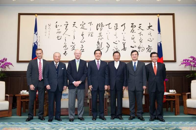 美國管理學大師麥可.波特博士上午由海基會董事長江丙坤陪同,前來總統府晉見總統,國安會諮詢委員楊永明也在座。