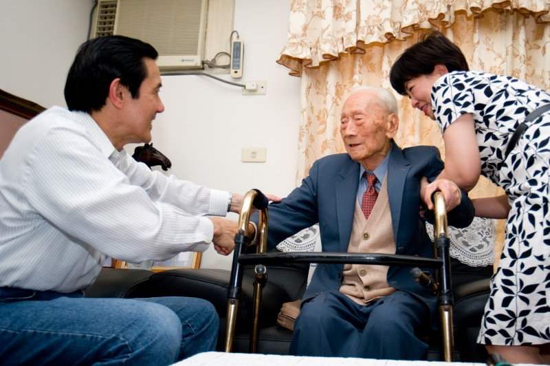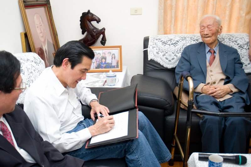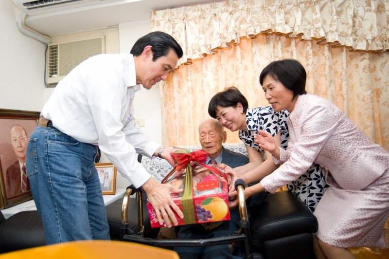 馬英九總統今天下午前往高雄市探視高齡106歲的高雄中學王家驥前校長,對王校長在雄中任教24年,重視五育併進,堅持全人教育理念,樹立教育家風範與典型,表達尊敬與欽佩之意。