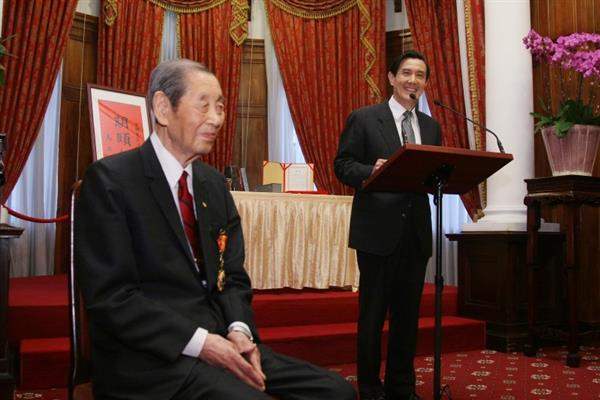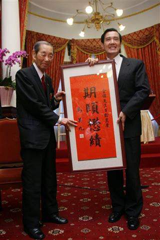 馬英九總統今天上午出席外交部在台北賓館舉辦的資深外交家趙金鏞大使最高等級特種外交獎章頒發暨慶生儀式,除肯定外交同仁的辛勞與奉獻外,並致贈「期頤懋績」壽屏,祝賀趙大使百歲壽齡生日快樂。