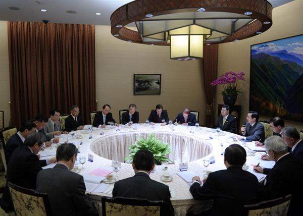 下午參加座談會者有:蕭萬長副總統、總統府秘書長廖了以、副秘書長賴峰偉、國策顧問:姜欽城、黃大洲、黃和平、蔡定邦、許勝雄、楊世緘、顏文熙;經濟部長施顏祥、行政院經建會主委蔡勳雄、金管會主委陳冲、農委會副主任委員胡興華、勞委會副主任委員潘世偉等。