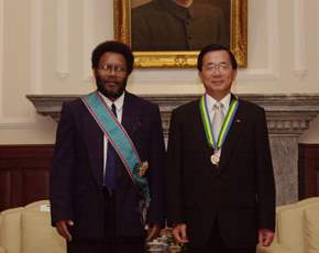 陳總統水扁先生今天和索羅門群島總督拉卜立(John Ini Lapli)相互贈勳,象徵兩國邦誼永固與人民真摯可貴的友誼。