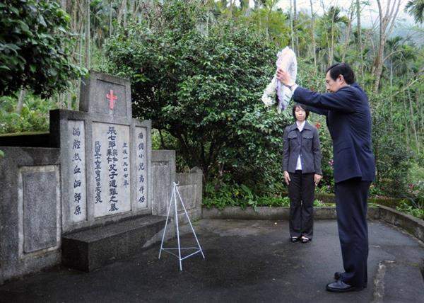 馬英九總統今天下午前往花蓮訪視228事件張七郎先生遺族,並在張七郎及其夫人、張宗仁、張果仁墳前致意及發表感言,隨後與家屬聚敘,對他們的生活表達關心。