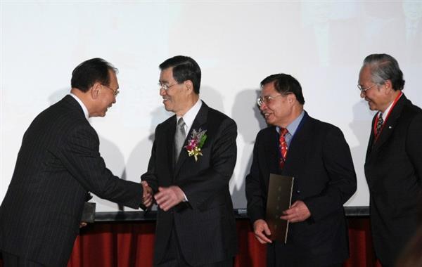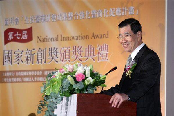 蕭萬長副總統今天下午在行政院長吳敦義、國家生技醫療產業策進會(生策會)會長陳維昭、行政院國家科學委員會主任委員李羅權陪同下出席「第7屆國家新創獎頒獎典禮」,除頒獎給得獎的單位外,並向獲獎者道賀,肯定其在生技醫療產業方面的創新研發及貢獻。
