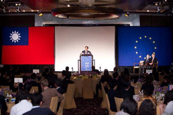 馬英九總統今天晚間應邀出席「2010歐洲日晚宴」活動,除代表中華民國政府與人民向歐盟及其27個會員國祝賀53歲生日外,並以「貢獻國際社會、支持『歐洲日』的主題」、「活路外交有助增進我國際空間與台歐盟實質關係」、「籲請歐盟早日給予我國人免申根簽證待遇」及「兩岸『經濟合作架構協議』有助台歐自由貿易協定的達成」四大主題,以英文發表致詞。