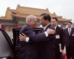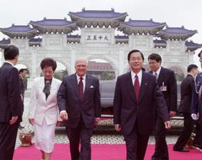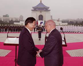 陳總統水扁先生今天以軍禮歡迎率團來華訪問的尼加拉瓜總統博拉紐。