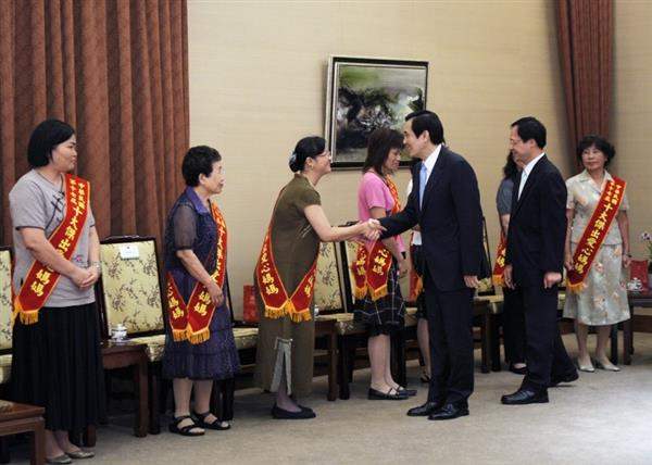 馬英九總統今天上午在總統府接見「第17屆全國十大傑出愛心媽媽慈暉獎」得獎人一行,對10位得獎人撫育身心障礙兒女的辛苦及為台灣社會帶來的正面價值,獻上高度肯定與敬意。