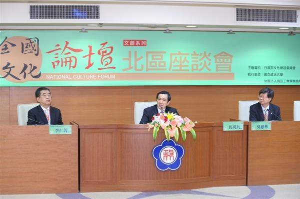 總統說,他在台北市長任內首創地方政府之先成立文化局,並延攬龍應台女士擔任文化局局長;他也提出「工程可以使一個城市變大,但只有文化可以讓一個城市變偉大」的理念。此外,他數度強調,在過去數十年,海峽兩岸很多是文化為政治服務,但我們希望能扭轉過來,讓政治或行政可以為文化服務,後來政府的作法也都朝向這個目標,希望未來能提供更多平台與資源,協助文化界發揮所長、突破創新。