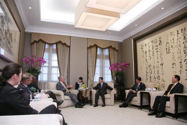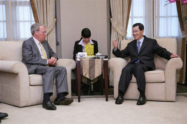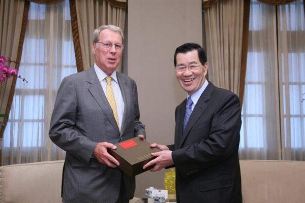 「美國在台協會」主席薄瑞光一行下午由外交部次長沈呂巡陪同,前來總統府拜會副總統。