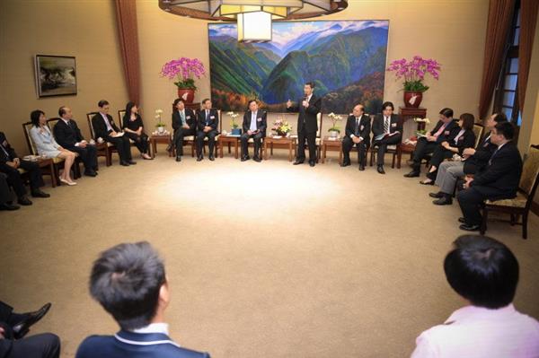 蕭萬長副總統今天上午在總統府接見香港城市大學商學院院長魏國基及來台進行交流訪問的EMBA學生與企業家,代表政府表達誠摯歡迎之意。