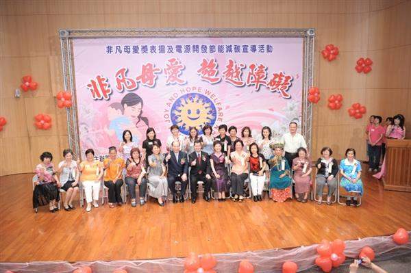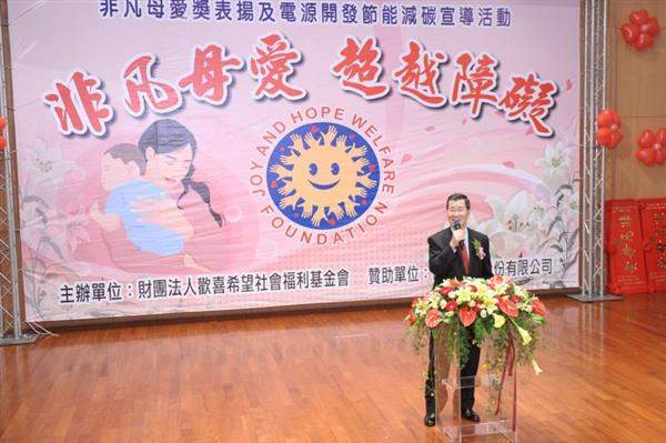 副總統指出,獲得「非凡母愛獎」的21位得獎人,都有許多不為人知、深藏在社會底層的愛心事蹟,經過「歡喜希望社會福利基金會」初選、訪視、複審等過程,在今日接受公開表揚。因為獲獎者無私的奉獻與堅持,不但將母愛的偉大發揮到極致,也鼓舞了人性的光明面,讓社會洋溢更多溫馨的氛圍,而她們的愛心與無怨無悔的付出,讓許多身心障礙子女得到了周全的照顧,對此他要表達高度的肯定與欽佩之意。