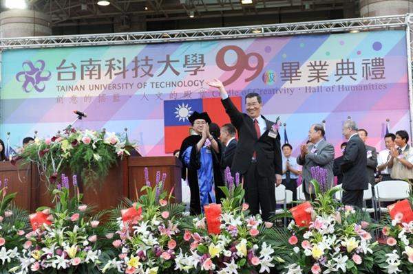 隨後副總統前往國立台南科技大學參加該校畢業典禮,副總統先在該校植樹,於致詞時表示,民國94年3月該校成立了「蕭萬長講座」,他曾經三次來此主持講座,該校每年都邀請數位菁英授課,使得講座越辦越好,同時該校強調文化創新,這是21世紀我們國家要走的方向。