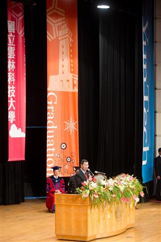 副總統先前往國立雲林科技大學參加該校畢業典禮,副總統致詞表示,國立雲林科技大學是充滿活力與創意的學校,培育出許多人文與科技兼備、理論與實務並重的優秀科技人才,在教學、研究發明等方面獨占鰲頭,並連續四年榮獲教育部技職風雲榜第一名;在產學合作方面尤其出色,成為各校觀摩學習的標竿學校,更是業界尋求技術推廣與產學合作的首選學校;值得一提的是,該校配合國家發展與世界潮流,全力發展「綠色科技」與「文化創意」,努力發展成為一流的科技大學。