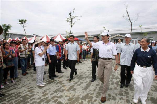 總統表示,園區迄今已有1,884人入住,民眾生活安定下來後,也開始從事生產。莫拉克風災即將屆滿週年,在此之前還會有大量的永久屋落成。總統對中央與地方政府在這方面的重建工作非常快速而有效,深感欣慰,並強調相關重建工作還在進行當中,政府會繼續努力。
