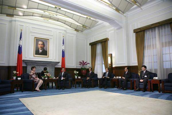 畢耶菈大使上午由外交部長楊進添陪同,前來總統府晉見總統,國安會副秘書長劉志攻也在座。