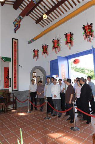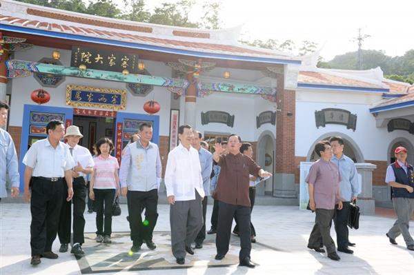 隨後,副總統由劉縣長及明華園陳勝福團長陪同,參訪銅鑼鄉客家大院及公館鄉出磺坑客家桃花源村預定地,對客家大院深具特色的建築及地方文化,留下深刻印象。副總統對文化創意產業的發展相當關注,在訪視過程中,除專注聆聽解說,並期許在中央與地方政府攜手合作下,更進一步發展客家文化,讓更多人可以欣賞到客家傳統與現代兼具的多元之美。
