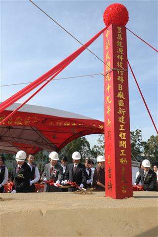 蕭萬長副總統今天下午前往苗栗縣竹南鎮新竹科學園區竹南園區,在苗栗縣長劉政鴻陪同下出席「昱晶能源科技股份有限公司」竹南B廠動土典禮,對該公司開拓我國太陽能產業的創新作法並提高產值,表達高度肯定與嘉許之意。